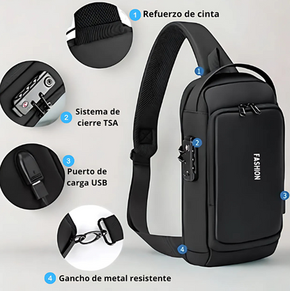 BLACKSHIELD™ - Mochila Bandolera con Sistema Antirrobo