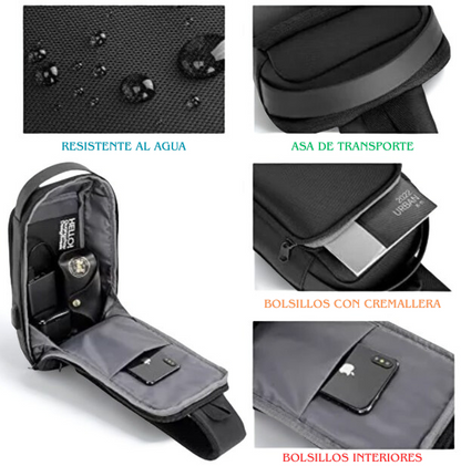 La Mochila Bandolera con Sistema Antirrobo combina diseño inteligente y comodidad total. Lleva tus pertenencias con máxima seguridad y un toque de estilo moderno.