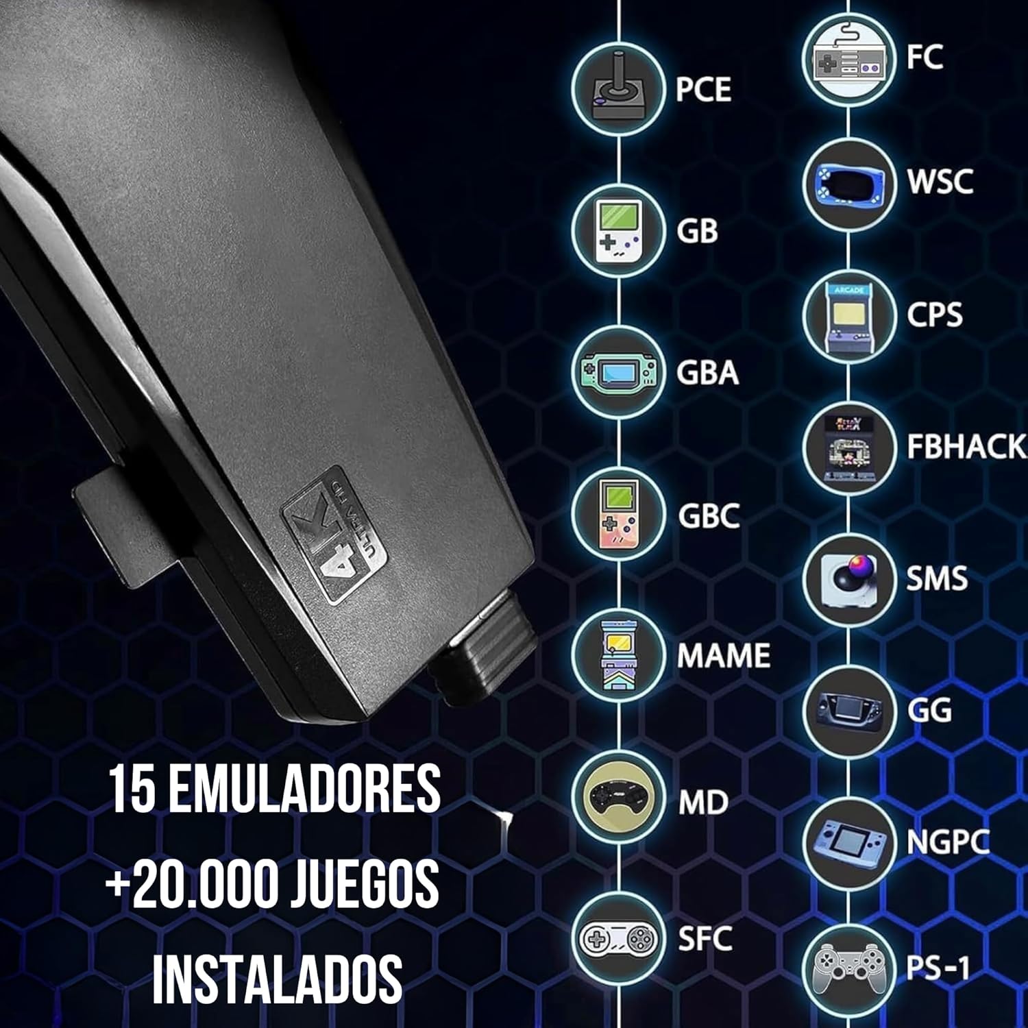 - 🕹️ 10 000 + juegos preinstalados en una tarjeta TF de 64 GB con 9 emuladores integrados.